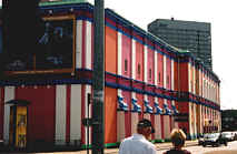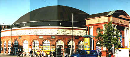 NÖJENNedan: Paladsteatret.Axeltorv (bakom Cirkus).Ursprungligen byggd som järnvägsstation 1918 och blev senare biograf. Den djärva färgsättningen är av senare datum.