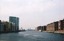 Ovan och nedan: Nordöst om Langelinie ligger denna trista miljö som är Köpenhamns svar på Londons Docklands. Förr bodde de fattiga vid hamnen, nu bor miljonärerna där. Men husen är lika grå!