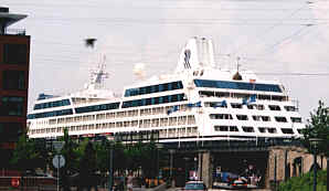 Ovan och nedan: Kryssningsfartygen lägger till och kastar loss med ungefär samma fart som tunnelbanetågen kommer och går från T-Centralen i Stockholm: Ut väller turisterna och snabbhandlar souvenirer föreställandes Den Lille Havfrue och felaktigt målade dalahästar. De verkligt ambitiösa hinner med en snabbtur genom Köpenhamn med speciella bussar. Nu när Malmö hamn och Köpenhamns hamn gått samman, lär liknande absurda scener bli vanliga även i Malmö!
