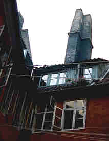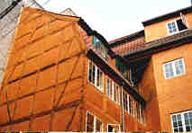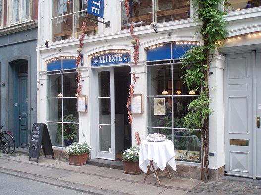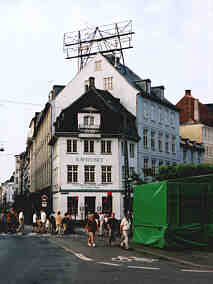 Vy från uteserveringen med den för Københavns äldre hus så typiska ockra-färgade putsen.