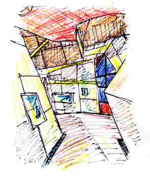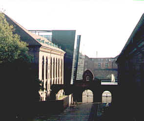 Nedan: Till vänster en del av biblioteksbyggnaden ovan, bakom den; skymtar