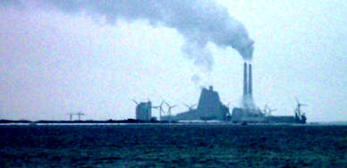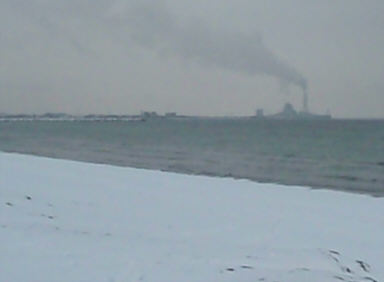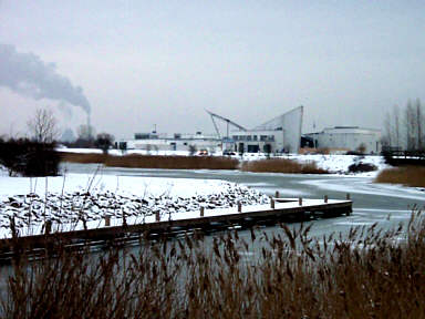 Den konstgjorda stranden och de små sjöarna och vikarna med sina uppdragna båtar gav ett melankoliskt intryck. Ödsligheten förstärktes av det bolmande kraftverket vid Avedøre borta i horisonten. Detta kraftverk, som kan drivas på allt från halm till gas och pellets, kan ses ända från Västra Hamnen i Malmö. (Nedan) |
