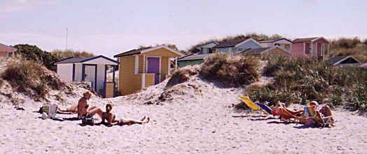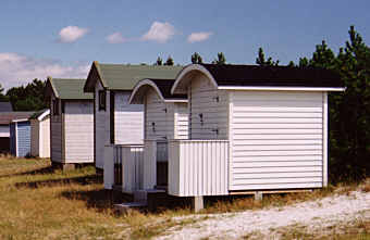 Badhytter kantar stranden, från