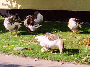 Inget Skanör utan gäss; här som målning på ett hotell och betande på gatan. Det lär även finnas ett övergångsställe för gäss. |