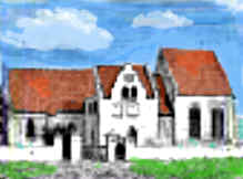 Sankt Olofs kyrka i Skanör är som på många andra medeltida kyrkor, byggd på resterna av en äldre kyrka. Den påbörjades på 1200-talet och byggdes om på 1300 och 1400-talet. Det är en av få kyrkor som har krypta. Eftersom kyrkan var under renovering när jag plåtade den, fick jag ta en teckning ur en gammal bok och färglägga den. |
