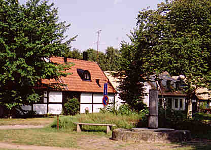 Här är även en gammal bevarad torgpump av trä.