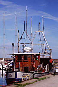 Fiskebåt och en av de många fiske- "hoddorna" som är så typiskaa för de små skånska fiskesamhällena. |
