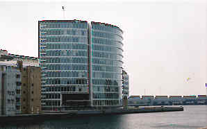 Ovan och nedan: Nordöst om Langelinie ligger denna trista miljö som är Köpenhamns svar på Londons Docklands. Förr bodde de fattiga vid hamnen, nu bor miljonärerna där. Men husen är lika grå!