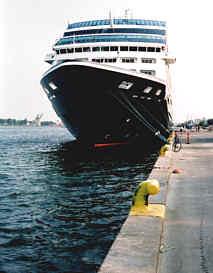 Ovan och nedan: Kryssningsfartygen lägger till och kastar loss med ungefär samma fart som tunnelbanetågen kommer och går från T-Centralen i Stockholm: Ut väller turisterna och snabbhandlar souvenirer föreställandes Den Lille Havfrue och felaktigt målade dalahästar. De verkligt ambitiösa hinner med en snabbtur genom Köpenhamn med speciella bussar. Nu när Malmö hamn och Köpenhamns hamn gått samman, lär liknande absurda scener bli vanliga även i Malmö!