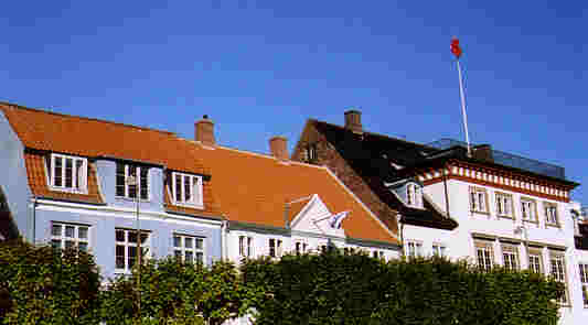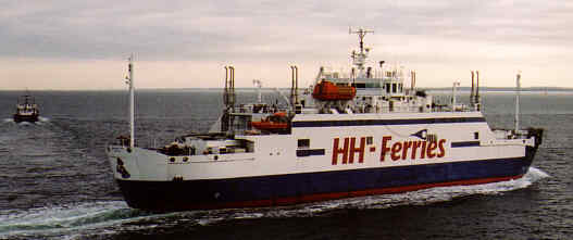 | Turen med färjan från Helsingborg tar bara 25 minuter. Man hinner precis käka en pølse och skölja ner den med en øl. Här i sitt inlopp smalnar Öresund likt en hals. Det är därför som tvillingstäderna på ömse sidor börjar sina namn med "hals". Dom som bor vid halsens borg, respektive grusiga strand (ör). |