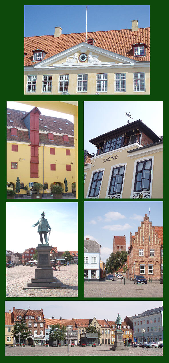 Statyn på torget föreställer Frederik VII som "gav" Danmark dess grundlag och som annars mest är känd för sin alkoholism och sin älskarinna Grevinde Danner.
