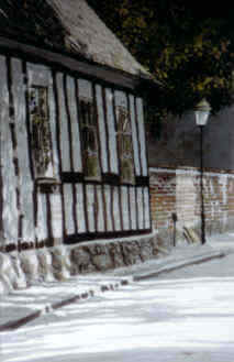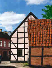 Två vyer av Lindforska husetvid Adelgatan, byggt ca 1750 och nu en del av Kulturen. Den nedre bilden är tagen in ifrån Kulturen. I bakgrunden skymtar Dekanresidenset.Akvarellen är utförd av Erik Lundgren