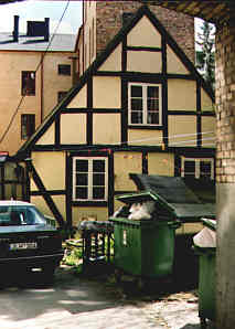 (Mitt foto är för ovanlighetens skuld, taget från gårdssidan.)Detta röda hus hade