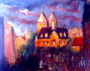 Stortorget i kvällsljus. Målning av Axel Nelson.