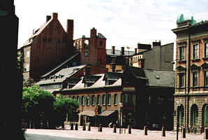 Redan på 1600-talet låg apoteket Svanen här. Dagens apoteksbyggnad är i huvudsak