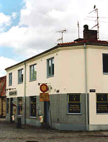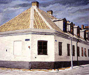 Nedan: Korsgatan 13 / Trädgårdsgatan 9. Brödbagare Jönsson lät uppföra huset 1876. (Bilden är målad av Erik Lundgren)