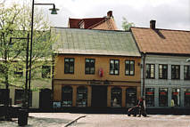 Jag har alltid fascinerats av detta höga hus med dess många gavelburspråk överst. Tobaksaffären i bottenvåningen hade förr ett enormt sortiment av fina pipor och dyr piptobak och exklusiva cigaretter av märken som ingen princebolmare nånsin hört talas om. Nu är affären mindre än en skugga av sitt forna jag, men ännu kan man köpa en burk Dunnhill.