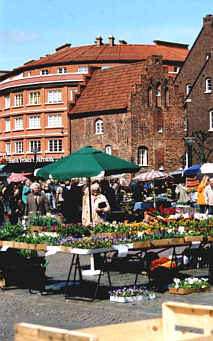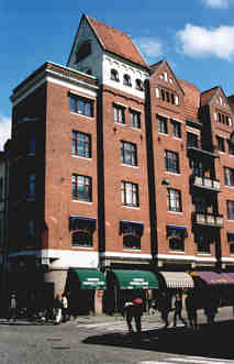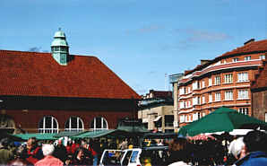 MårtenstorgetMedan Stortorget är lika gammalt som staden, är Mårtenstorget från 1840talet. Den vackra Saluhallen till vänster nedan, är från 1909 och Funkishuset till höger i Sydeuropeisk funkisstil är från 1931och brukar anses vara ett av Lunds vackraste hus. |