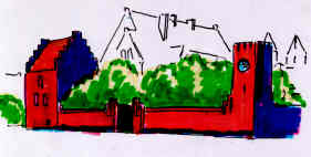 Bilden nedan: Samma hus ett tjugotal år senare, nu med mur och klocktorn.