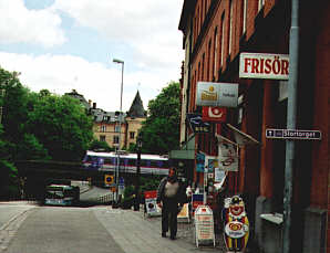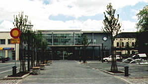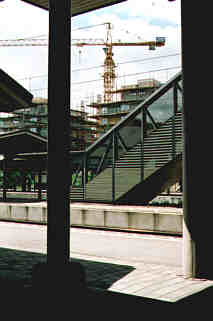 Ovan: Nybygge på västra sidan av järnvägen år 2001. Nedan: Den nybyggda västra järnvägsstationsbyggnaden. I bakgrunden till höger skymtar den gamla vackra järnvägsstationen vid Bangatan från 1857-1859.