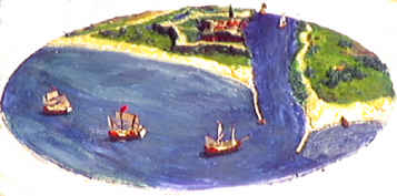 Svenskarna som kvällen innan ankrat uppe vid halvön Hela, seglade