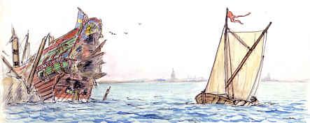 skeppen som ligger för ankar utanför Weichselmünde, upptäcker de svenska