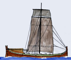 NORSK NORDLANDSBÅT (JEKT, FEMBÖRING): The Norwegian Nordlandsbåt (of which the "femböring" with five pairs of oars is the best known), bear clear resemblance of the Viking age ships. In a race between gaff rigged boats and fembörings 1891, the square rigged fembörings won. They sailed closer to the wind than the gaff rigged boats!