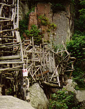 Nu är mina krafter nästan helt slut. Över ett brant fält med klappersten och jag börjar krypa. Idiotiskt nog tänker jag (+50 och med kondis som en hundraåring, , i normala fall - men idag har jag gått och klättrat ett par mil på fastande mage!) på att elitsoldater kan gå flera mil utan mat, sömn och vatten.
