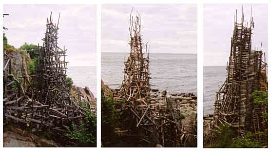 Från 1984 har konstnären Lars Vilks byggt på sitt svartbygge av drivved. Lika länge har myndigheterna med eld och motorsågar och juridk försökt få bort bygget. Vilks förklaringar och tilltag är lika dumma och kvasiintellektuella som det mesta som kommer ur moderna konstnärers käftar.