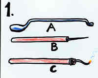 etc. C: Pinne med bomullstråd längst fram. Sätt eld på tråden