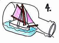 FIG. 3 och 4: Nu viker du ihop båten och stoppar in den i flaskan.