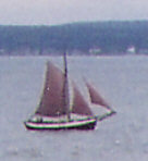 Det här är en typisk "slup" som var vanlig bland bönder som bildade partsrederier i slutet av 1800-talet. Jag såg även ett tremastat skonertskepp kryssa upp mot Kronborg.